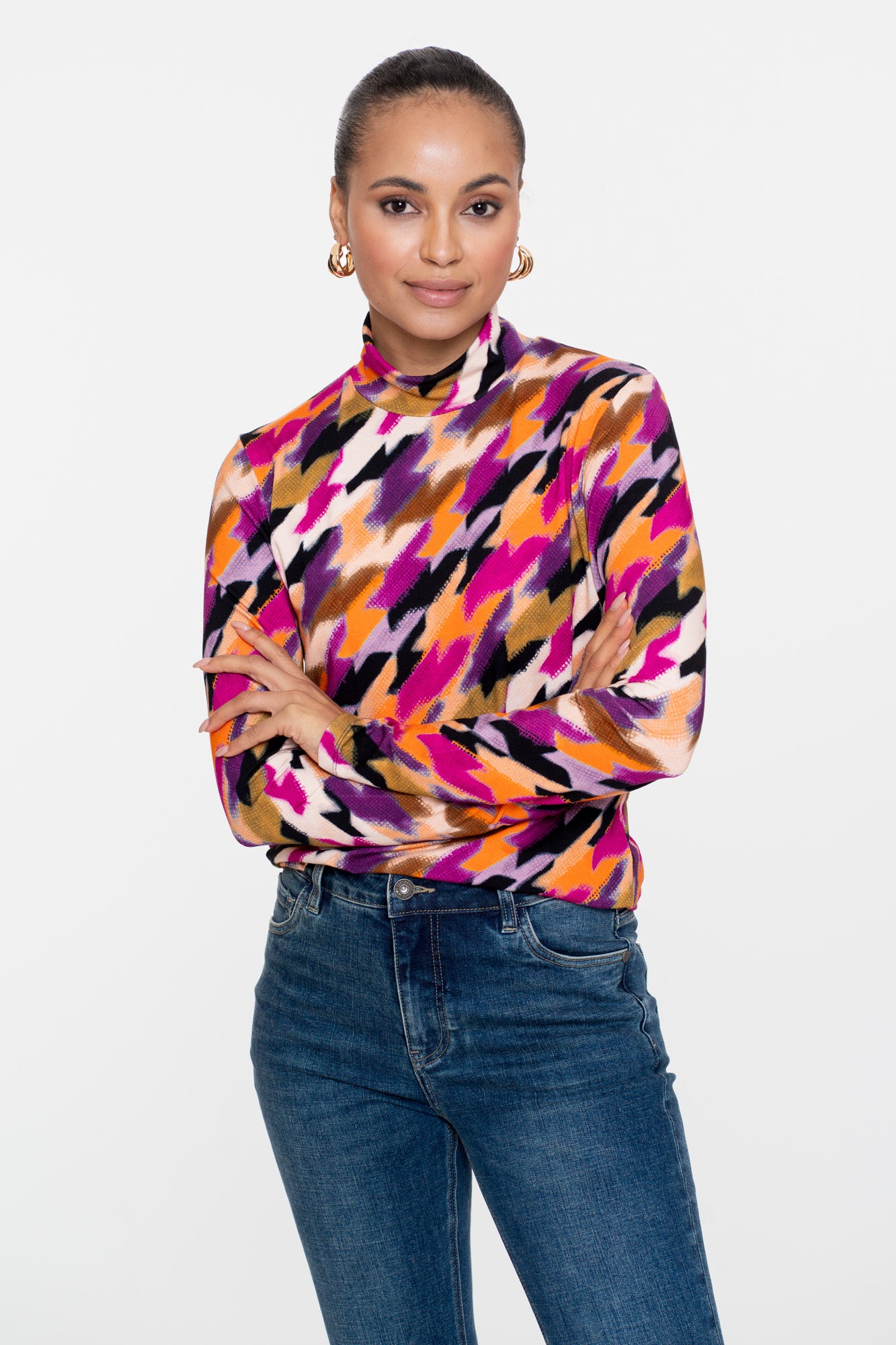Geisha dames top met opstaande kraag en print
